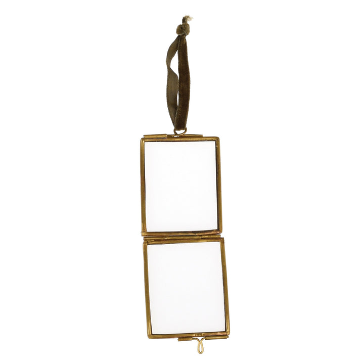 - The tiny photo frame is made from glass with a distressed brass frame, it opens on hinges and a photo or piece of paper can be inserted.
